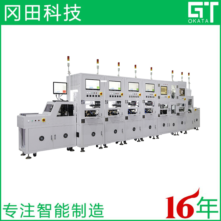 產(chǎn)品簡介:該設備是散熱器模組墊圈和導電泡棉自動化組裝測試生產(chǎn)線。生產(chǎn)線采用工位單機形式組合成線布局,
